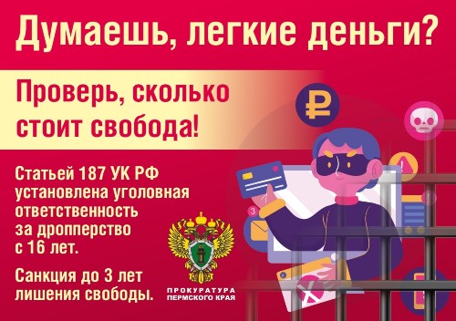 Мошенничество в сети «Интернет» В настоящее время в связи с изменившимися условиями финансового рынка мошенничество в финансовой сфере зачастую связано с использованием новых механизмов и инструментов (call-центры, дропсервисы). Мошенническая схема представляет собой выстроенную иерархию в виде пирамиды, на вершине которой находится организатор. Есть так называемые «заказчики», то есть лица, имеющие большие суммы денежных средств, полученных преступным путем. «Заказчики» подбирают «дроповодов», которые, в свою очередь, общаются с конкретными исполнителями задачи — «дропами». «Дропы» — это подставные лица, задействованные в нелегальных схемах по выводу средств с банковских карт. Такие лица привлекаются с целью избежать ответственности за перевод или обналичивание денежных средств со счетов и банковских карт. К «дропам» относятся не только лица, осведомленные о противоправном характере своей деятельности, но и те, кто не понимает, что участвует в криминальной схеме. Такие лица могут как непосредственно принимать участие в цепочке переводов или же продать (отдать) свою банковскую карточку «дроповоду» вместе с реквизитами счета и пин-кодом. При этом сами «дропы» становятся соучастниками преступления, даже если до конца не понимают последствия своих действий. Чаще всего в «группу риска» попадают подростки, студенты, которые ищут быстрый заработок, и доверчивые пенсионеры. Способами привлечения подставных лиц могут быть как личные знакомства, так и обычные объявления с предложением интересной работы с предложением быстрого роста заработка. Объявления размещаются как правило в сети Интернет, на сайтах кадровых агентств, форумах, в социальных сетях и в телеграмм-каналах. Вместе с тем, за участие в преступных схемах в качестве «дропа» следуют неблагоприятные последствия, поэтому если Вы случайно стали участником нелегальной схемы, следует заявить об этом в правоохранительные органы. Так, банками непрерывно проверяются операции в целях выявления клиентов с признаками «дроппа», указанные клиенты ставятся на дополнительный учет, вводятся ограничения на получение новых карт, иных электронных средств платежа и на проведение финансовых операций по выпущенным картам. При выявлении банками состава и участников дроп-схемы по обналичиванию денежных средств информация о таких клиентах и операциях направляется правоохранительные органы. Участие в преступных схемах в качестве «дропа» влечет уголовную ответственность, в том числе по статьям 187 (неправомерный оборот средств платежей), 159 (мошенничество) Уголовного кодекса Российской Федерации. Помимо этого, за указанные действия в соответствии с гражданским законодательством граждане несут финансовую ответственность. Если вы все-таки стали жертвой злоумышленников, постарайтесь как можно скорее обратиться в ближайший отдел полиции или позвонить по телефону 02 (с мобильного 102).