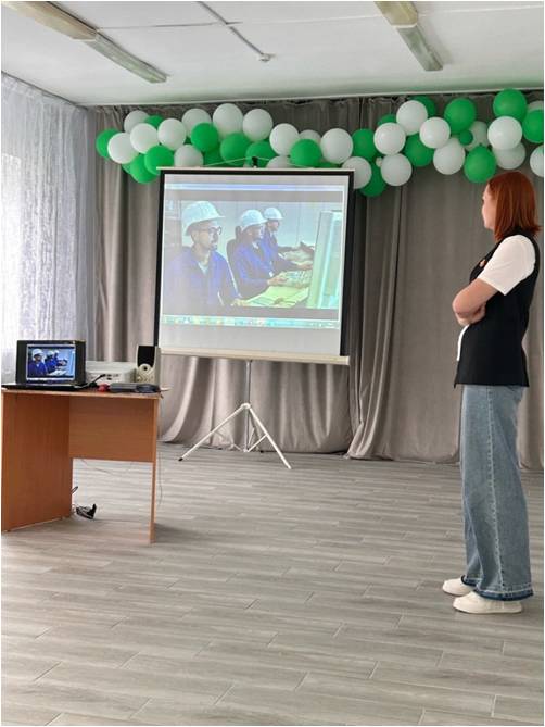 Специалист по профориентации «Метафракс Кемикалс» Юлия Истомина представила компанию и рассказала о возможных карьерных треках для обучающихся.