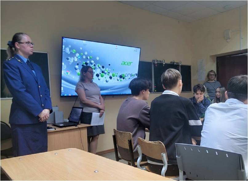 В рамках урока "О важном", проведенного среди учащихся 10 классов МБОУ «БСОШ № 1», судья Александровского городского суда Наталья Панова совместно с представителем ОМВД Александровского муниципального округа старшим инспектором ПДН ОУУП и ПДН майором полиции Еленой Аблициной, представителем прокуратуры г. Александровска старшим помощником прокурора Ольгой Косяновской, рассказали о работе в органах суда, прокуратуры и полиции.